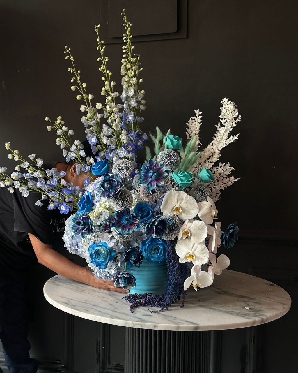Due to its nature, bloom of the flowers may also differ depending on season and supply. In the event of any supply difficulties, we reserve the right to substitute with a product of equivalent value and quality without prior notice. Please do not expect to receive 100% same arrangement as the sample photo.