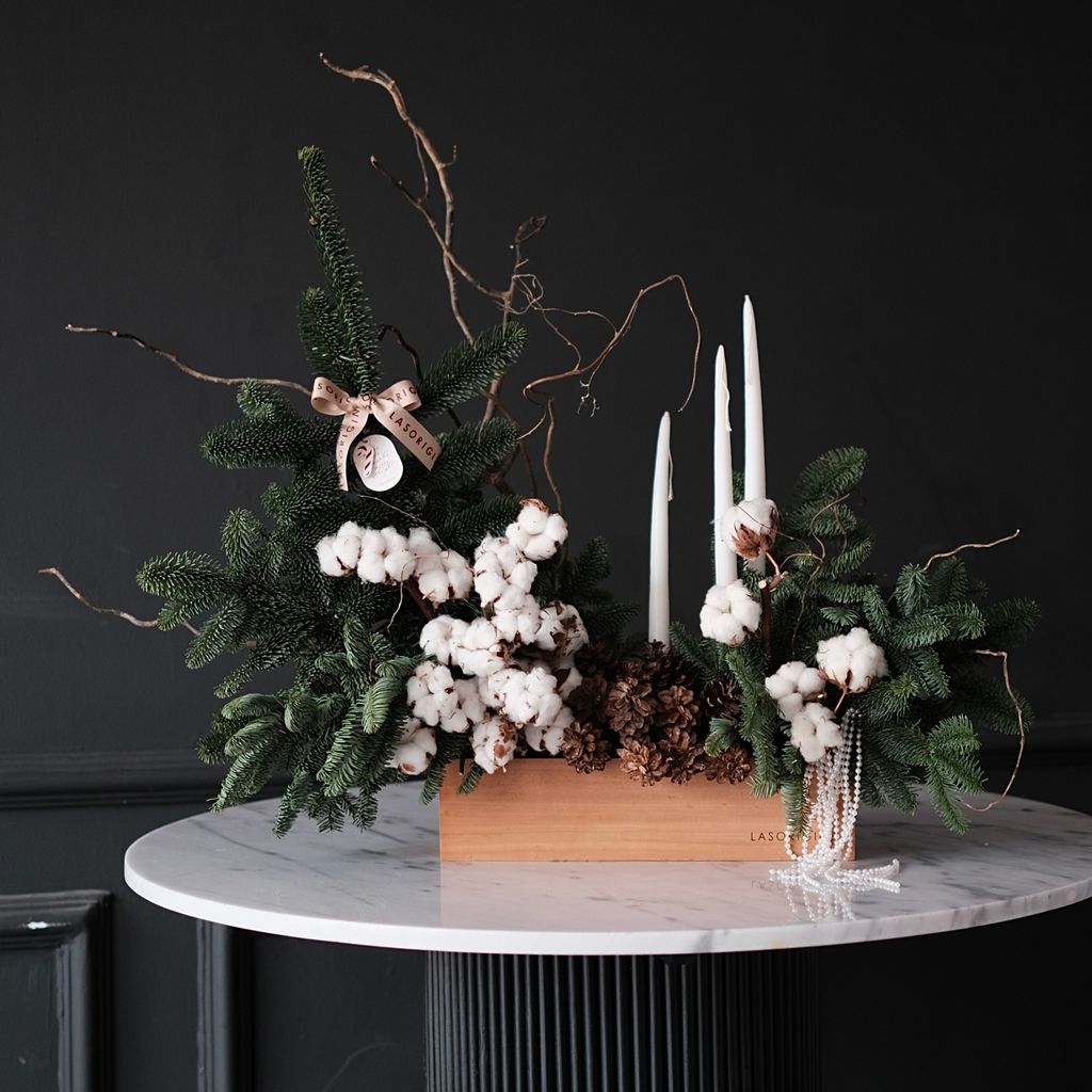 CLAUS: Wood Log Fresh Abies Nobilis with Candle
