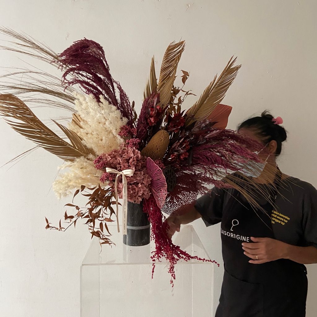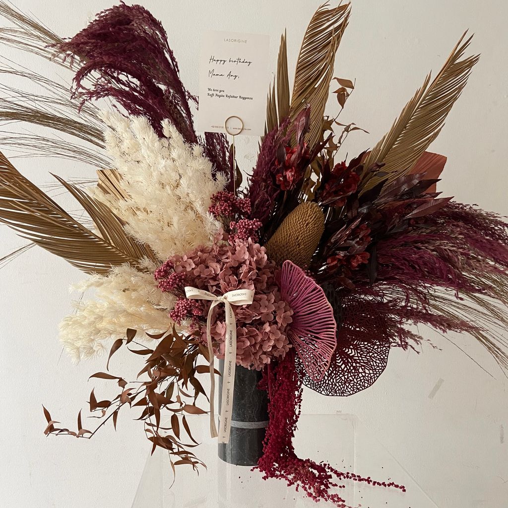 Due to its nature, bloom of the flowers may also differ depending on season and supply. In the event of any supply difficulties, we reserve the right to substitute with a product of equivalent value and quality without prior notice. Please do not expect to receive 100% same arrangement as the sample photo.